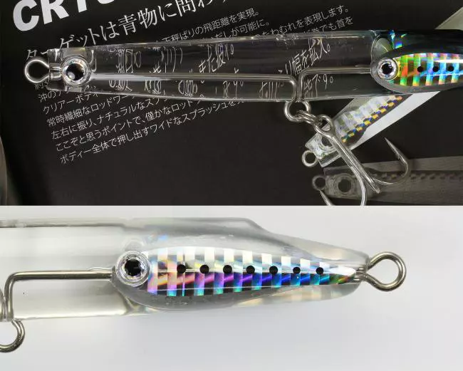 The 37g body achieves a flight distance comparable to that of a rocket balancer. It allows you to lure from a wide range, such as offshore schools of fish and offshore tides. The clear body allows you to express the playfulness of small baits with a simple reeling action. It is difficult and tiring to perform delicate rod work all the time, but even with a simple reel, it swings its head from side to side and creates a natural splash. When you feel it is the right moment, use a little rod work to expand the swing range from side to side. It is possible to generate a wide splash pushed out by the entire body.