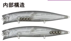 Of course, it is also considered for use in rivers. It is also particular about the action of swimming out of the current for a moment, and this is what makes it bite. The weight is fixed with TSL by the center of gravity movement of four spherical tungsten, so that it can attack naturally without thrashing around even in fast-flowing rivers . We deliberately used spherical tungsten to speed up the return of the center of gravity movement of the Hades 127F, which has no lip. Combined with the fixed weight on the abdomen, it swims surprisingly naturally after landing on the water.