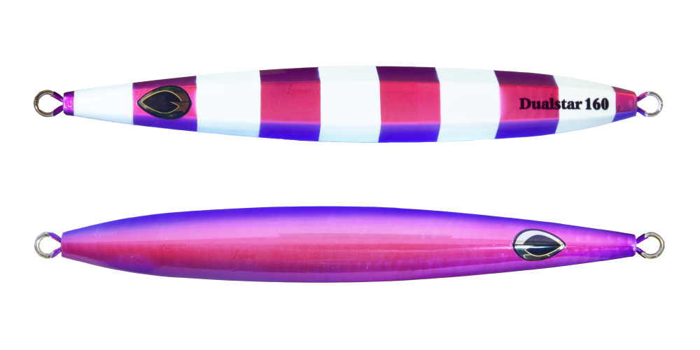 Starting with a long, quiet vertical movement followed by a flashy, long fall, it's also effective when it is lifted slowly and slid back, followed by a backslide fall. The Dual Star is a metal jig