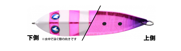 This strangely shaped Sea Ride is easy to use. If you "attach the line" to the eye with the eyeball, you can cast it and jerk it lightly to attract many fish with its unpredictable sliding action and slow fall. If you "attach the line" to the eye opposite the eyeball, you can cast it firmly, and you can easily create a backslide fall action by simply reeling it in and letting it fall by releasing the tension, which will attract fish that do not react when attached to the eyeball.