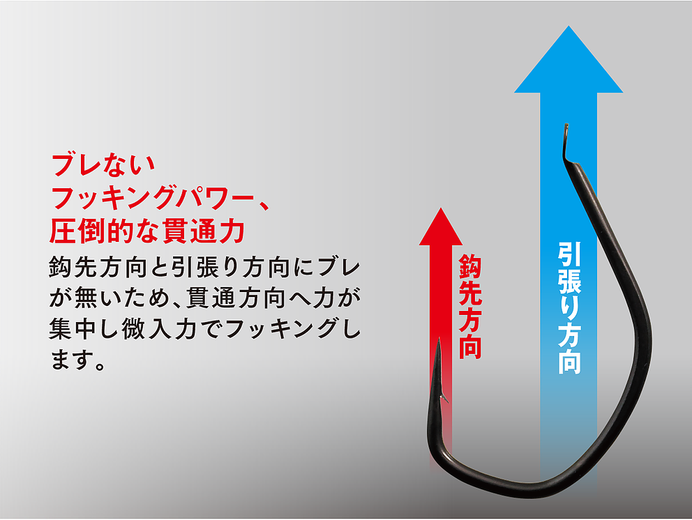 A hunting hook that instantaneously catches prey by hook tip of wide angle straight.