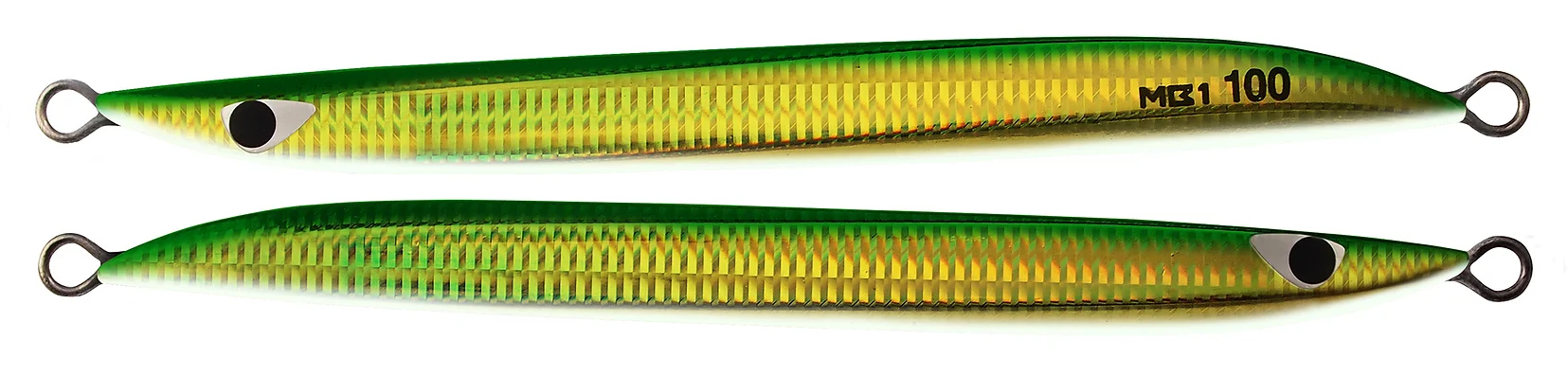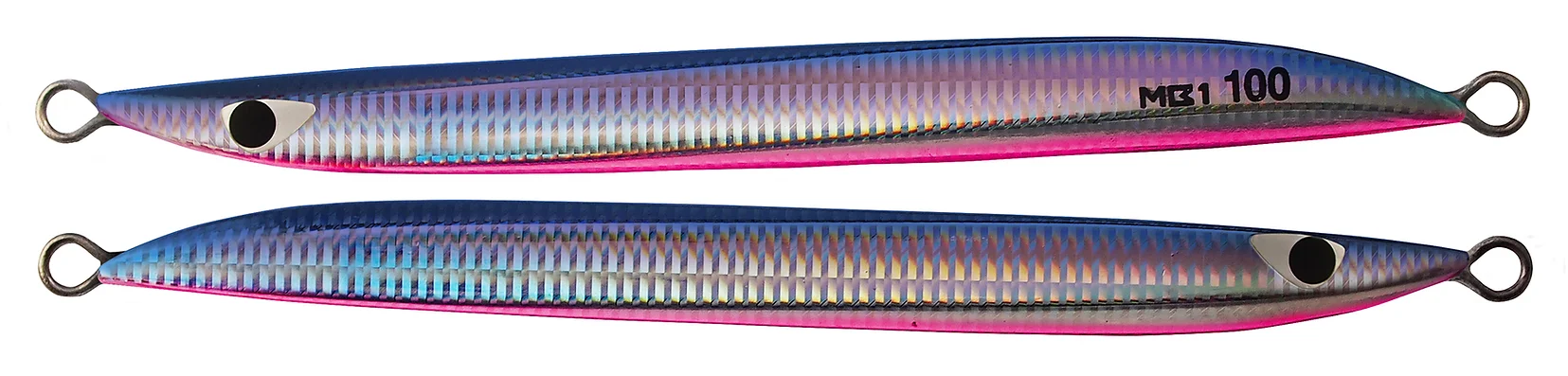 The MB1 Semi-Long is a metal jig that is highly effective when used in situations where small baits such as sardines and sand lances are densely packed under the water surface, and when luring fish in a bait ball under the water surface. Its perfectly symmetrical form, which produces the same action when jerking or falling, makes it easy to cut into the school of bait with its head in either direction, and lures fish with a half slide at a medium distance. The four sides, which appear different, flash continuously when cast flat, and the narrow form is thin and heavy due to its volume compared to its length, making it effective for catching small baits. It is more effective in close combat with the target close by than in fishing that explores a wide area.