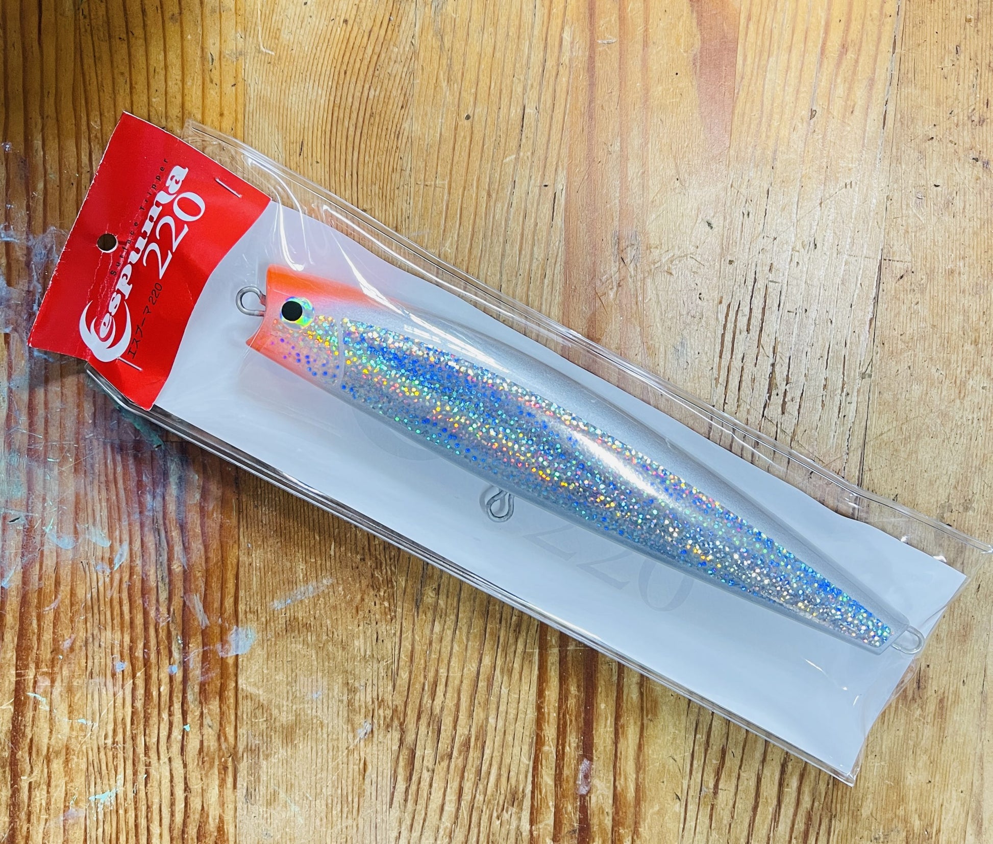 It is a popping pencil bait with a head shape that looks like an open mouth, and has achieved high appeal.