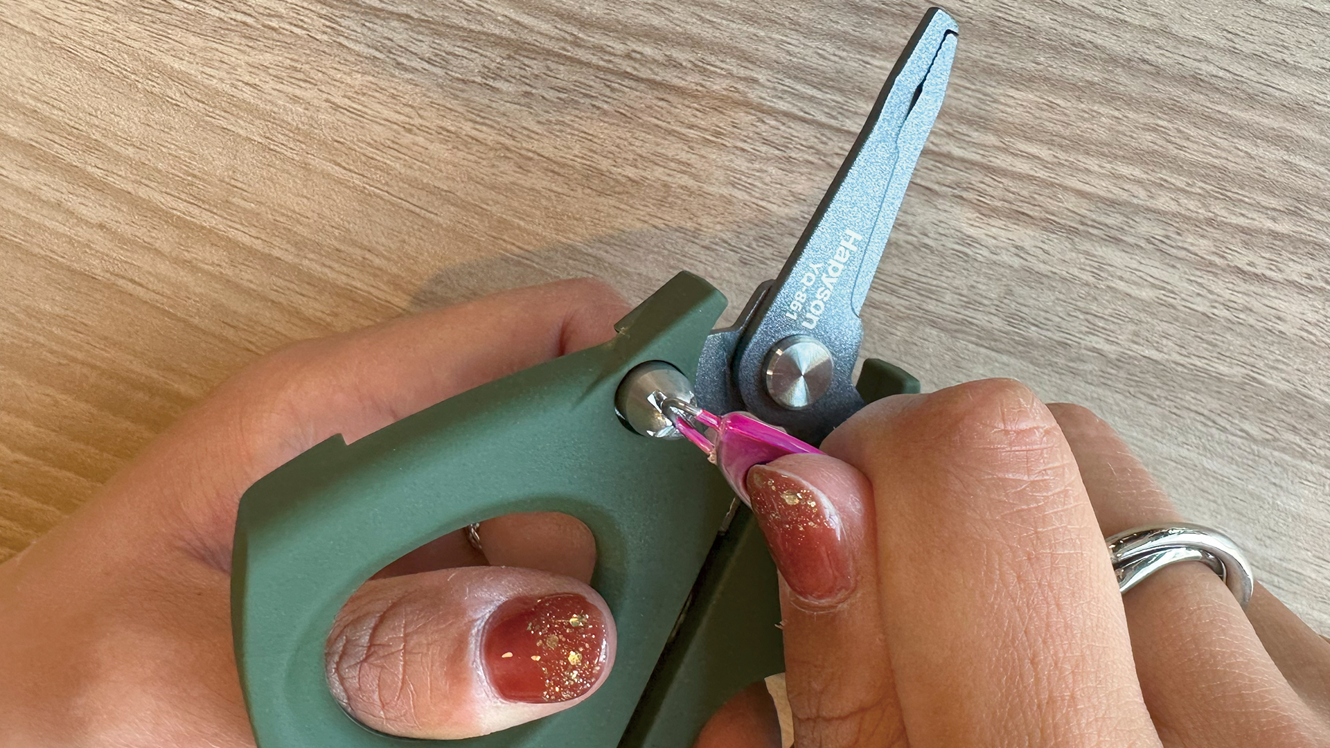 - Hook sharpener: adopts a diamond file, hold the tip of the needle as shown in the image and sharpen it.