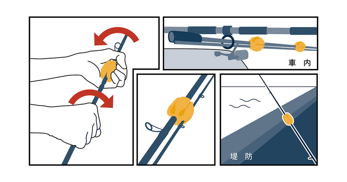 This is a helpful item when the joints of a rod become stuck and cannot be removed. The elastomer material has high adhesion to the rod and there is no loss in the transmission of force. In addition, the soft material can be used as a rod belt, and unlike ordinary rod belts, the rods do not touch each other, so there is no need to worry about scratches. It is also a convenient item that can be used for various purposes, such as placing rods on the embankment or reducing noise when mounted in a car.