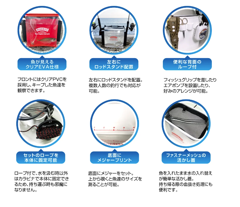 A water drawer and keeper bucket that is easy to use for both serious anglers and family fishing. For adults and children, the sea and rivers. This is an item that you can use in various situations.