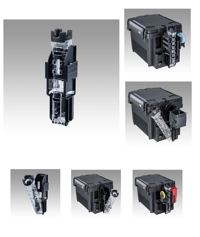 The slide style makes it much easier to change tackles and rearrange knots, and reduces the trouble of the line getting tangled on the tip. In addition, both sides of the stand body are equipped with multi-purpose holders that can be used to mount various optional parts, allowing for a high degree of freedom in customization. The stand hole diameter has been widened to 45mm, making it easy to insert and remove rods.