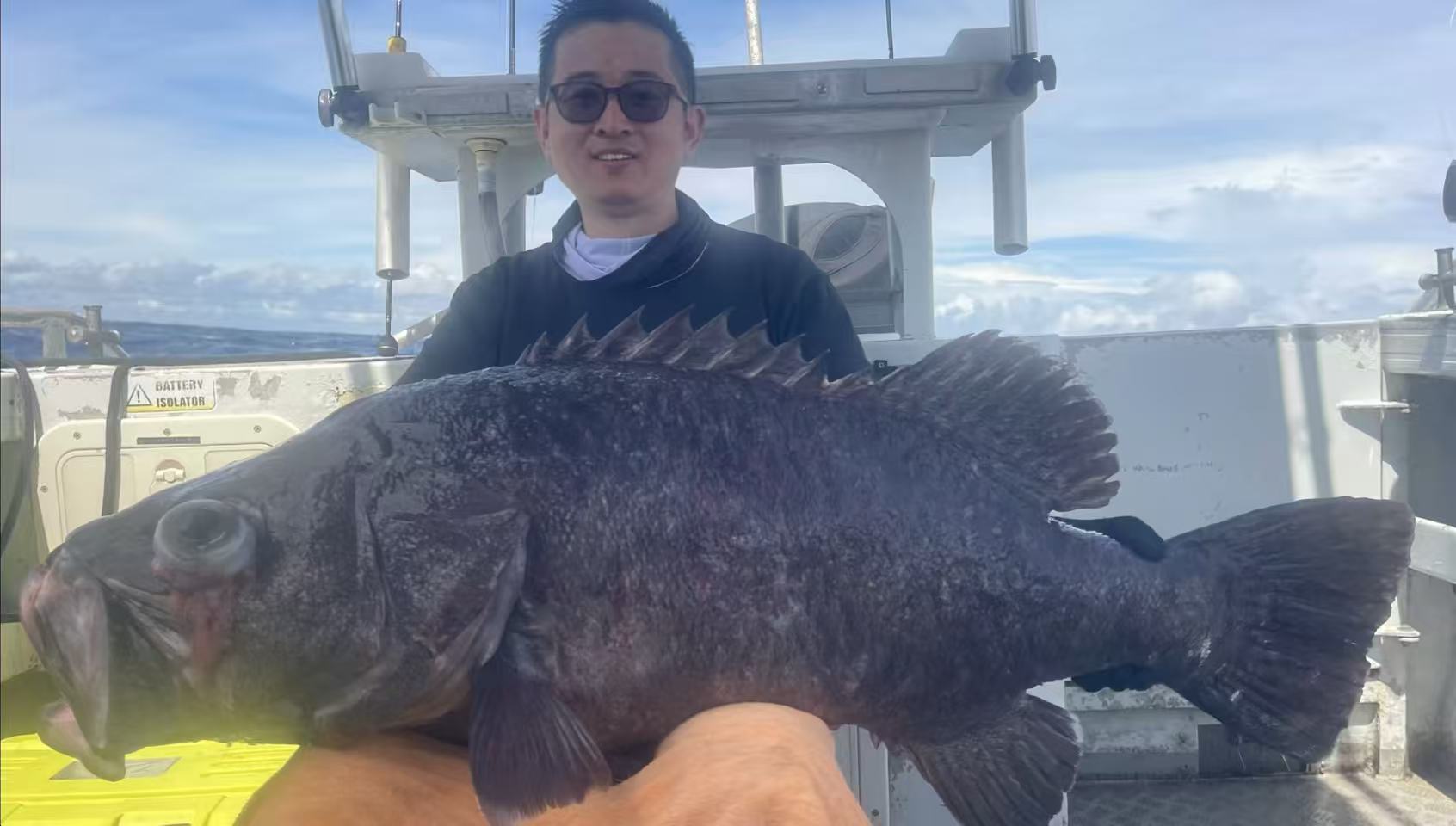 Dan with a bass grouper measured at 105cm, caught with #3 jigging rod (prototype)