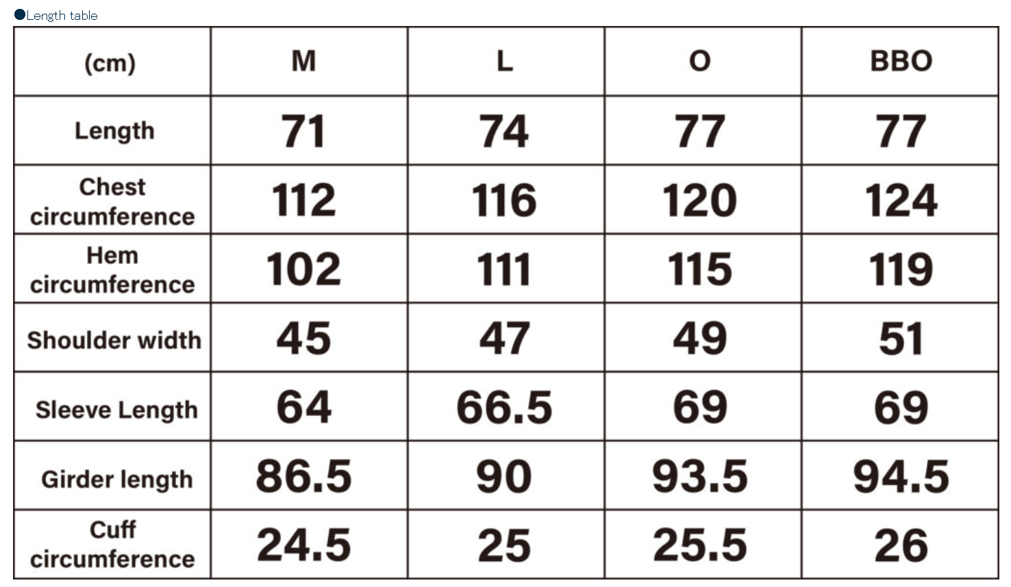 ■Size:M・L・O(XL)・BBO(XL-WIDE)