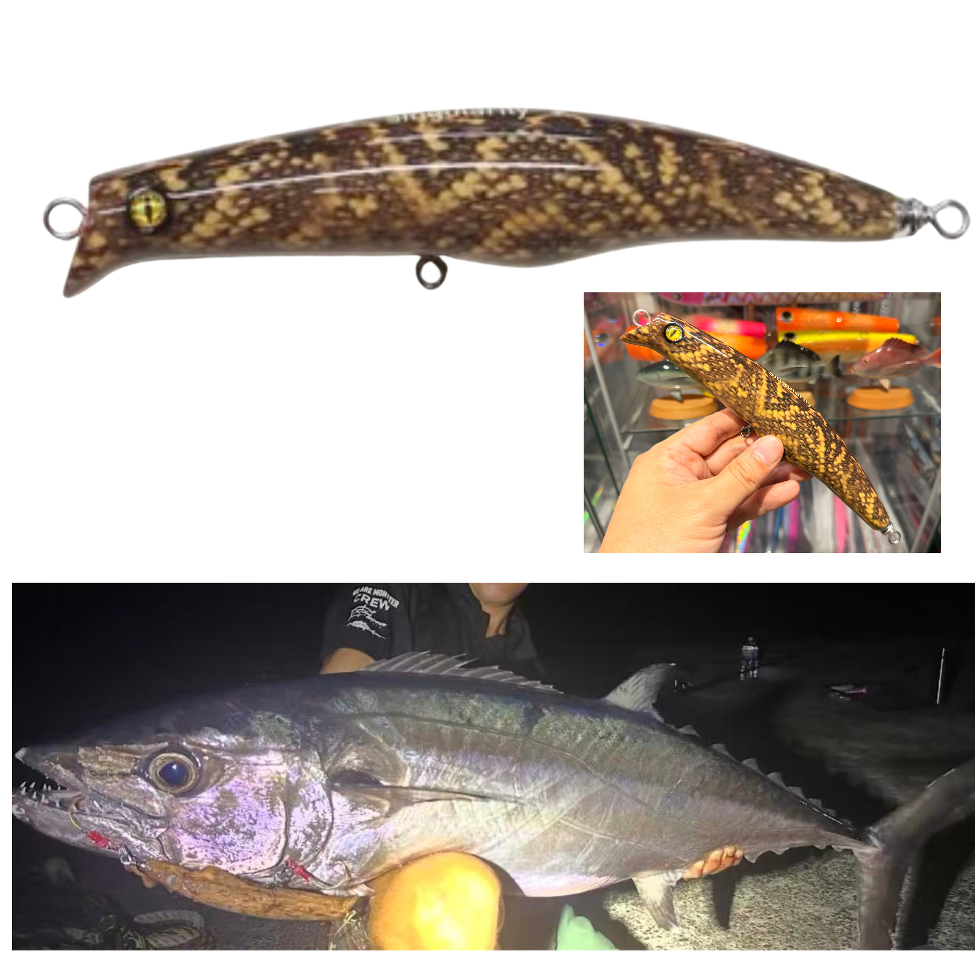 It maintains stability on a straight retrieve, designed to trigger strikers from GT that have already turned away from topwater lures.