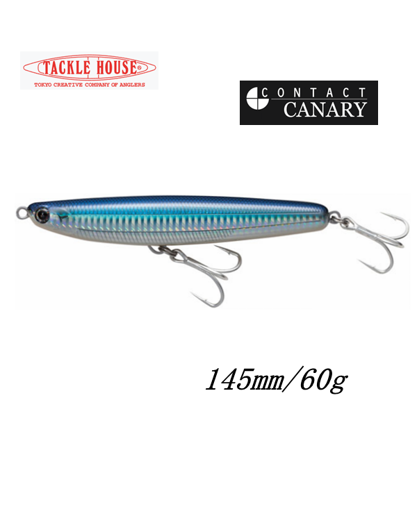 The Contact Canary is a swimming pencil that slowly sinks horizontally while rolling its body. When jerking after falling, it swims left and right while flapping. A slow retrieve will lure with a slalom action just below the surface. A fast retrieve will allow it to skip, and with rod work it will jump through the water with a 3D panic action, allowing it to perform not only underwater but also in the air. Its