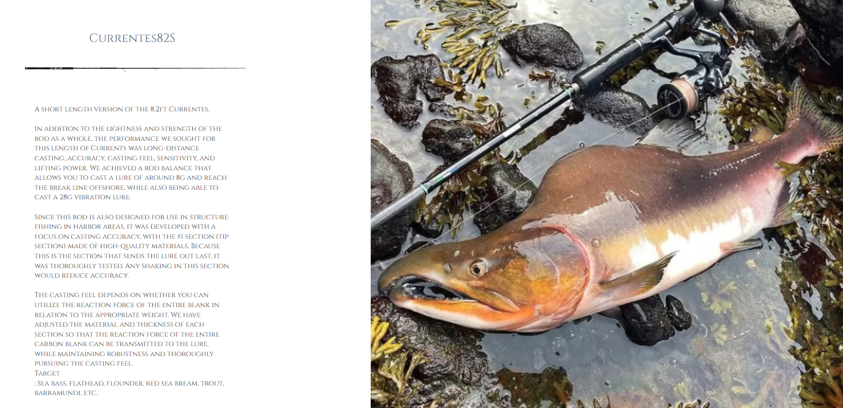 Designed by Noboriishi and Kimura, with Yamane and Katayama at the core, the Currentes 82S+ is a rod that is packed with the extraordinary passion of anglers.