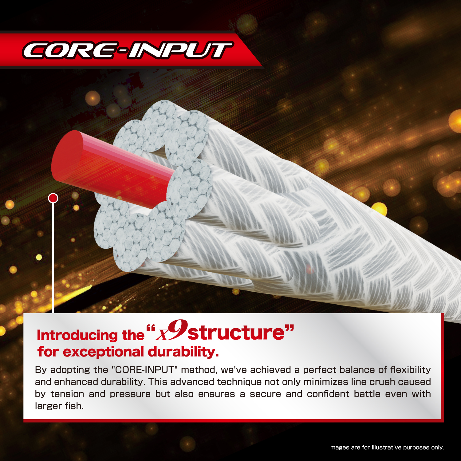 By adopting the "CORE-INPUT" method, we've achieved a perfect balance of flexibility and enhanced durability. This advanced technique not only minimizes line crush caused by tension and pressure but also ensures a secure and confident battle even with larger fish.
