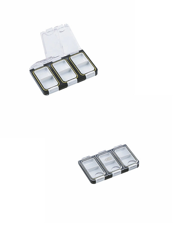 Throw this guy in your pocket or in your tackle box and you are ready to go! This small pocket sized folding compartment case comes with 3 storage compartments with attached hinged lids with water resistant lining.