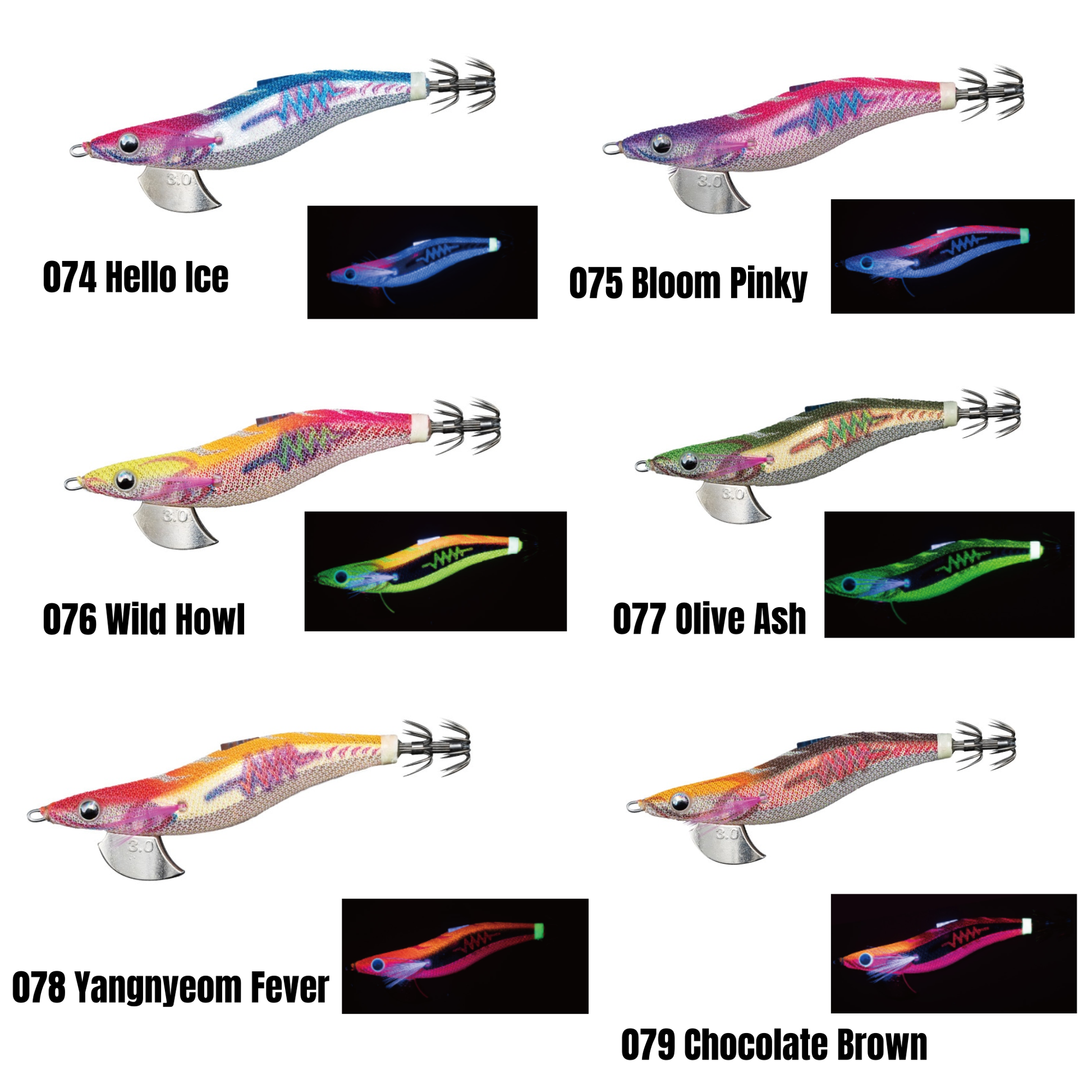 The Yamashita Egi-Oh Search Neon Bright 490 Glow #3.5 combines dual sensory appeal to trigger aggressive squid strikes. Strobe fins create a distinctive flat action that generates flashing light effects, while an integrated search rattle produces vibrations squid readily detect. The wide, reflective body surface amplifies light dispersion to attract predatory squid across greater distances. Engineered for active hunting scenarios, this model efficiently covers water columns through its combination of visual and acoustic stimulation, making it an effective choice for targeting squid in feeding mode.